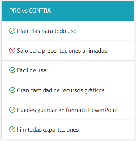• Explora: Disponen de innumerables plantillas estupendas de todo tipo. ¡Seguro que encuentras algo que encaja con tu proyecto! • Personaliza: Cada plantilla cuenta con un conjunto de recursos a tu disposición: iconos, infografías, imágenes… ¡Dales a tus presentaciones tu toque personal! • Impresiona: Una presentación bien estructurada, con un diseño claro, permite transmitir tu mensaje de manera más eficaz. ¡Haz que tus proyectos sean inolvidables!